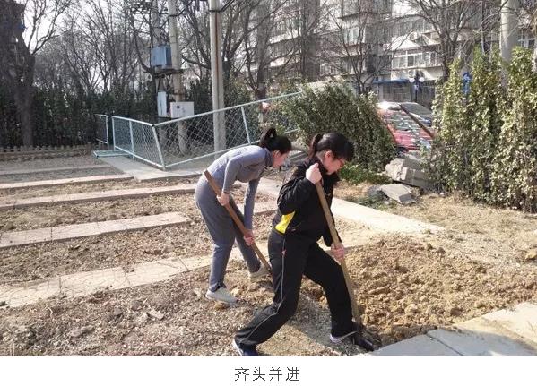劳动现场,所有人拿着工具,撸起袖子,加油干。一片片土地在铁锹下变得生机盎然,虽然尘土飞扬,汗流浃背,大家脸上、身上铺满了灰尘,手上起了血泡,但还是分工有序地进行翻地工作,汗水浸盖的脸庞下是开心的笑容。